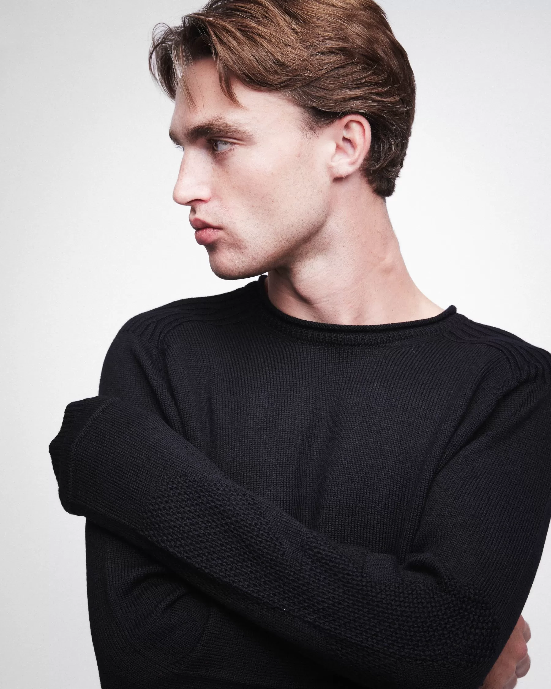 Realizzato in lana Merino Imagine. Maglia rasata fin. 7 girocollo vestibilità Comfort.Logo su manica destra a punto Li…