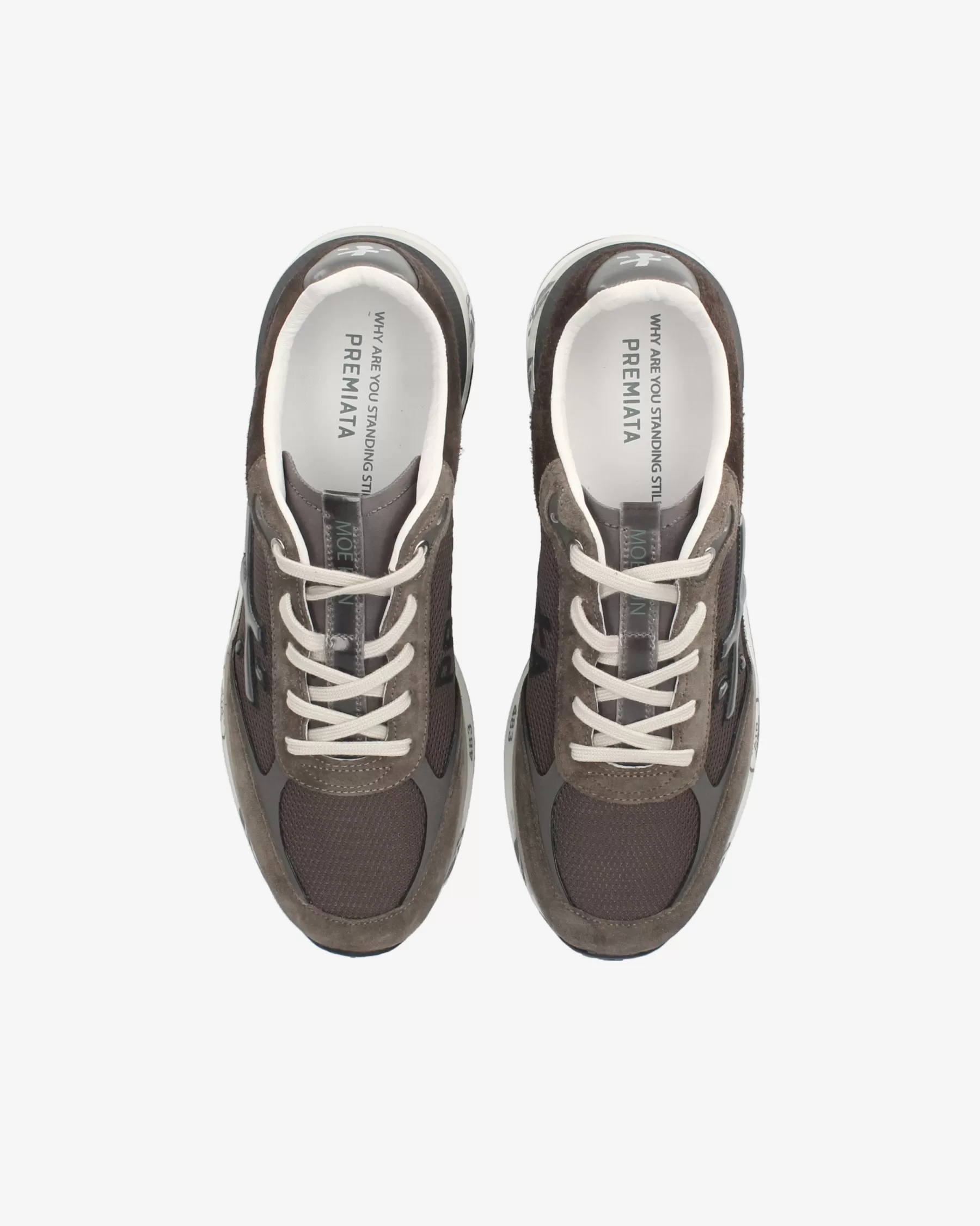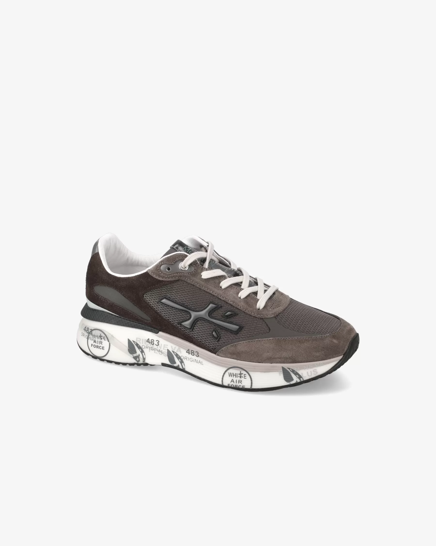 Ideate per stupire. La Moe run si basa sulla leggerezza del movimento, la stabilità e la sensazione ammortizzante data dall’innovazione del fondo. La nuova silhouette è ricca di dettagli: logo sul laterale esterno, scritta PREMIATA sul laterale interno e nome del modello sull’etichetta.