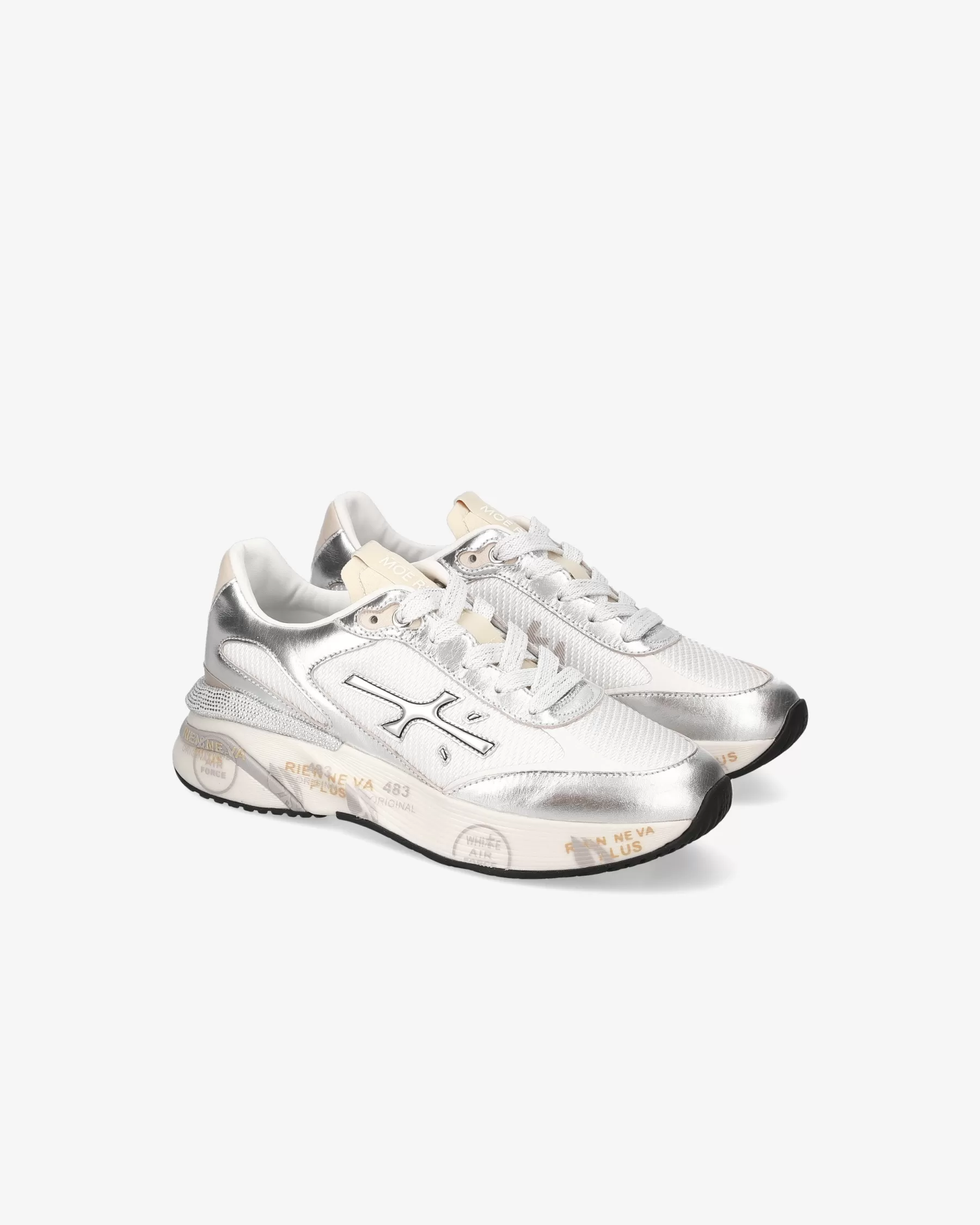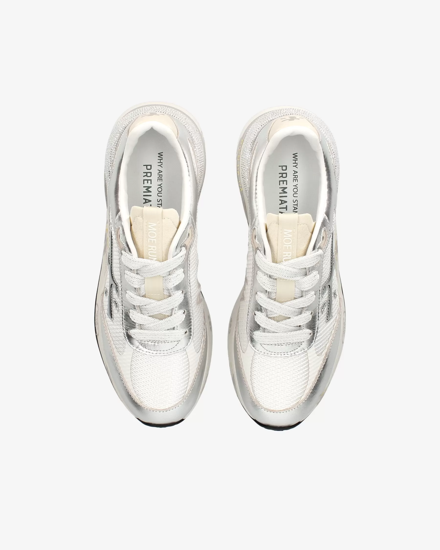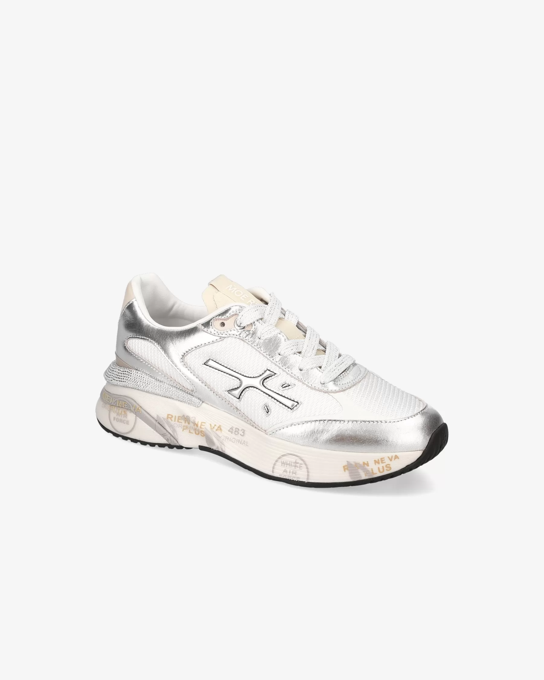 Ideate per stupire. La Moe run si basa sulla leggerezza del movimento, la stabilità e la sensazione ammortizzante data dall’innovazione del fondo. La nuova silhouette è ricca di dettagli: logo sul laterale esterno, scritta PREMIATA sul laterale interno e nome del modello sull’etichetta.