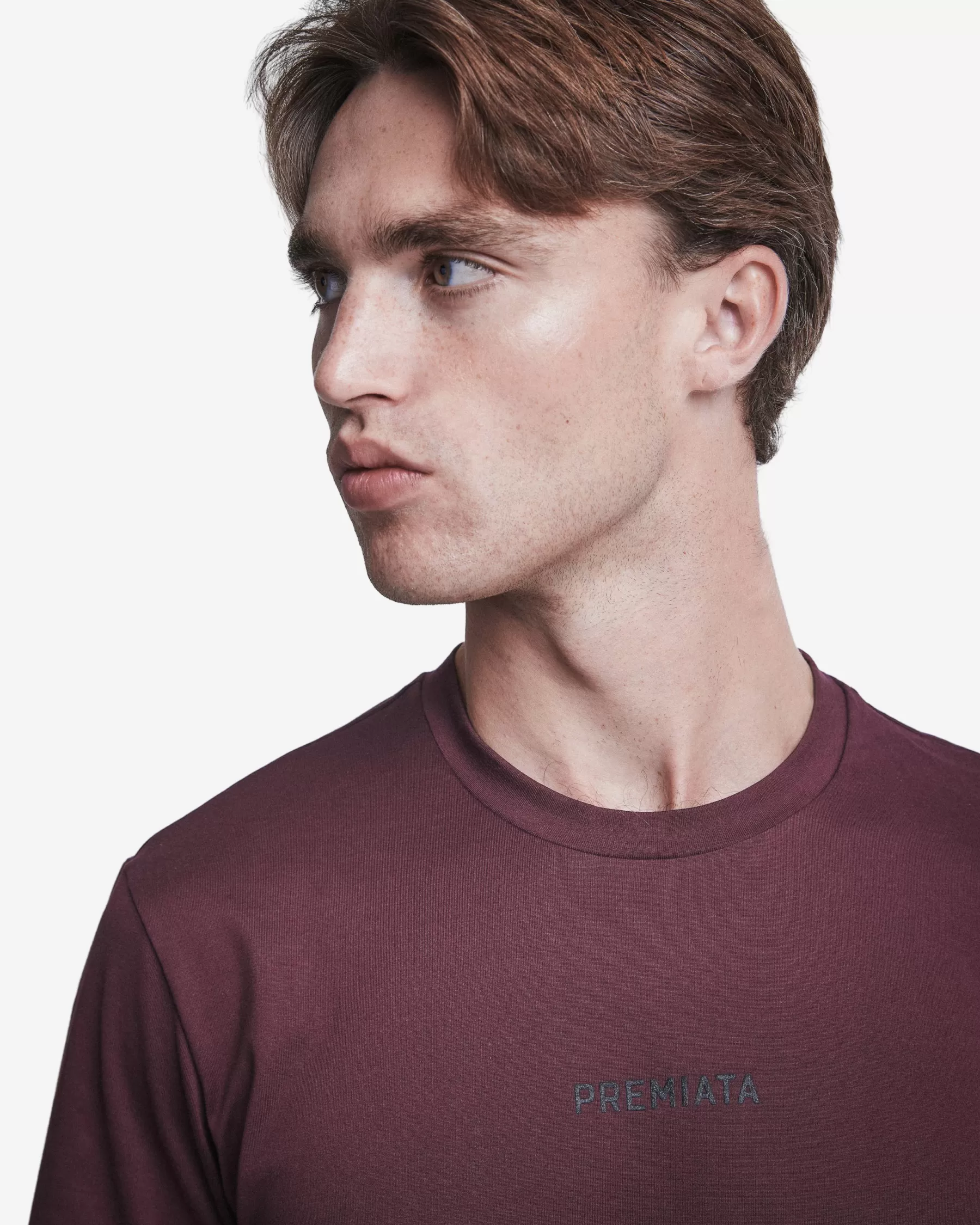 Realizzata in jersey di cotone Athens tinto capo. Scritta PREMIATA centrale sotto lo scollo.Motivo identificativo a 3 f…